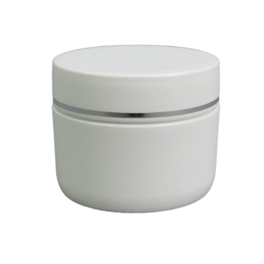 Set besteht aus Unterteil und Schraubdeckel weiß matt, Deckel mit Silberringprägung und einer 1,25mm eingelegten Tri-Seal-Schaumeinlage