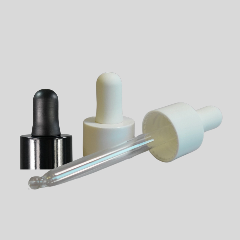Pipettenmontur 111mm besteht aus Loch-Schraubverschluss PP schwarz, Sauger TPE TM5 LFT reinweiß und Glasrohr mit gebogener Kugelspitze aus AR-Klarglas 111,00 x 7,25 x 8,50mm