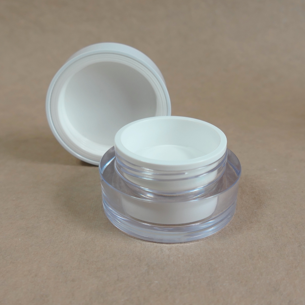 Set besteht aus Unterteil glasklar und Schraubdeckel SAN weiß mit mont. Dichteinlage, Innendeckel weiß